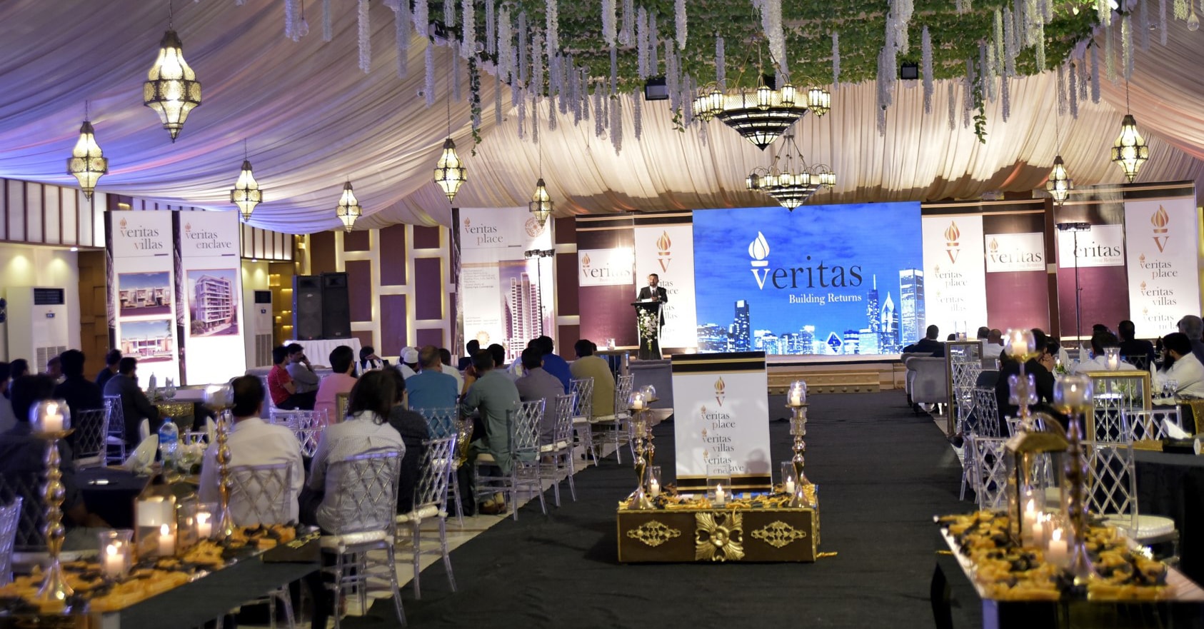 The Launch ceremony of VERITAS was held at Sapphire Global Marquee, Karachi. Both the Partners, Mr Ahsan Siddiqui and Mr. Adnan Afridi, were present on this occasion. On behalf of Veritas, Mr. Adnan Afridi commenced the ceremony with the welcome speech, followed by Mr. Khalid Siddiqi, Director Corporate, who shared the presentation about the real estate market and our upcoming projects namely Veritas Villas, Veritas Enclave & Veritas Place. The first project “Veritas Place” which is located at Theme Park Commercial, Bahria Town Karachi, was officially introduced to the real estate agents and brokers who were the primary audience of the event. Attractive incentives were unveiled at the ceremony including the higher commission upon selling the maximum number of units. Moreover, there were raffle prizes for the registered attendees present at the event.