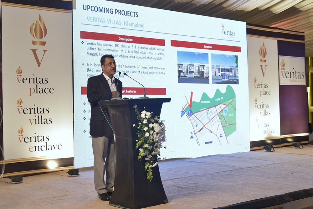 The Launch ceremony of VERITAS was held at Sapphire Global Marquee, Karachi. Both the Partners, Mr Ahsan Siddiqui and Mr. Adnan Afridi, were present on this occasion. On behalf of Veritas, Mr. Adnan Afridi commenced the ceremony with the welcome speech, followed by Mr. Khalid Siddiqi, Director Corporate, who shared the presentation about the real estate market and our upcoming projects namely Veritas Villas, Veritas Enclave & Veritas Place. The first project “Veritas Place” which is located at Theme Park Commercial, Bahria Town Karachi, was officially introduced to the real estate agents and brokers who were the primary audience of the event. Attractive incentives were unveiled at the ceremony including the higher commission upon selling the maximum number of units. Moreover, there were raffle prizes for the registered attendees present at the event.